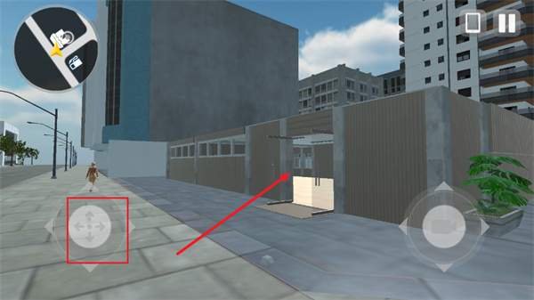 需要移动屏幕左下角的圆形按钮,以进行角色的移动,顺利的移动到店铺的内部即可;