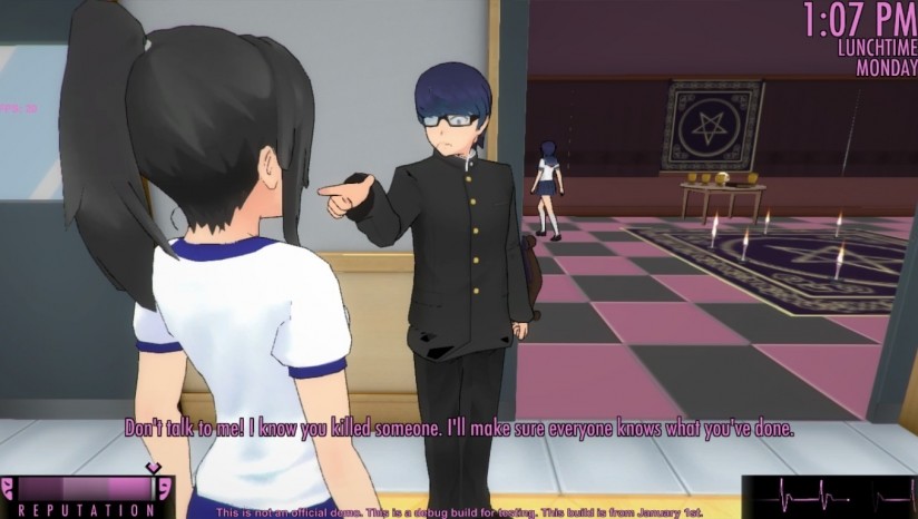 “厨师社团”允许玩家在制作小吃之后,快速提升自己在学校的名誉,这样也会让游戏简单许多。“戏剧社团”会给予玩家手套与面具道具,这样在谋杀其他学生的时候,就可以隐藏自己的行动痕迹。不过在学校发现学生死亡后,面具就会被校方禁止携带,玩家可要注意了。