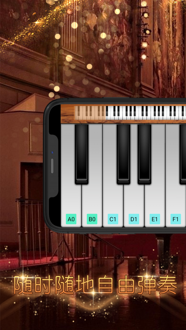 高仿真钢琴键盘:左/右滑动显示钢琴键盘的全88个键,模拟真实钢琴;