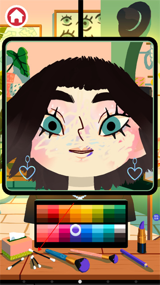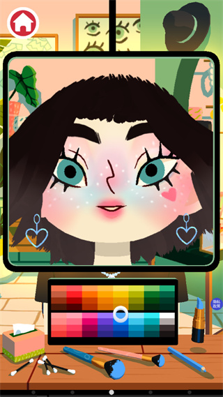 欢迎购买彩妆站,让您的沙龙拥有更多功能! 这个造型站拥有颜色和种类非常齐全的化妆品。 可以用睫毛膏刷出浓密的睫毛,再使用眼线、眼影或腮红工具呈现完整妆容!使用面部彩绘工具在角色面部绘制出各种图案。你有什么创意?