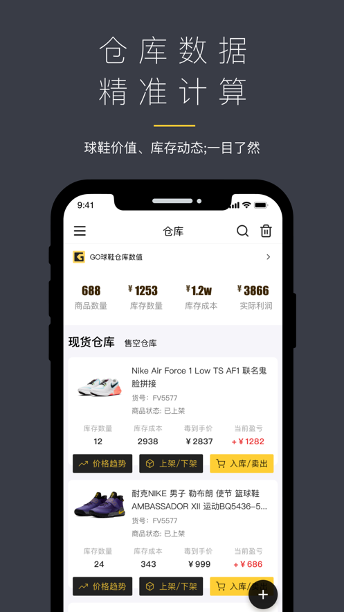 做为球鞋仓库ERP开创者,GO球鞋仓库致力于通过专业的储存管理系统服务,为球鞋爱好者们提供实时球鞋价值;