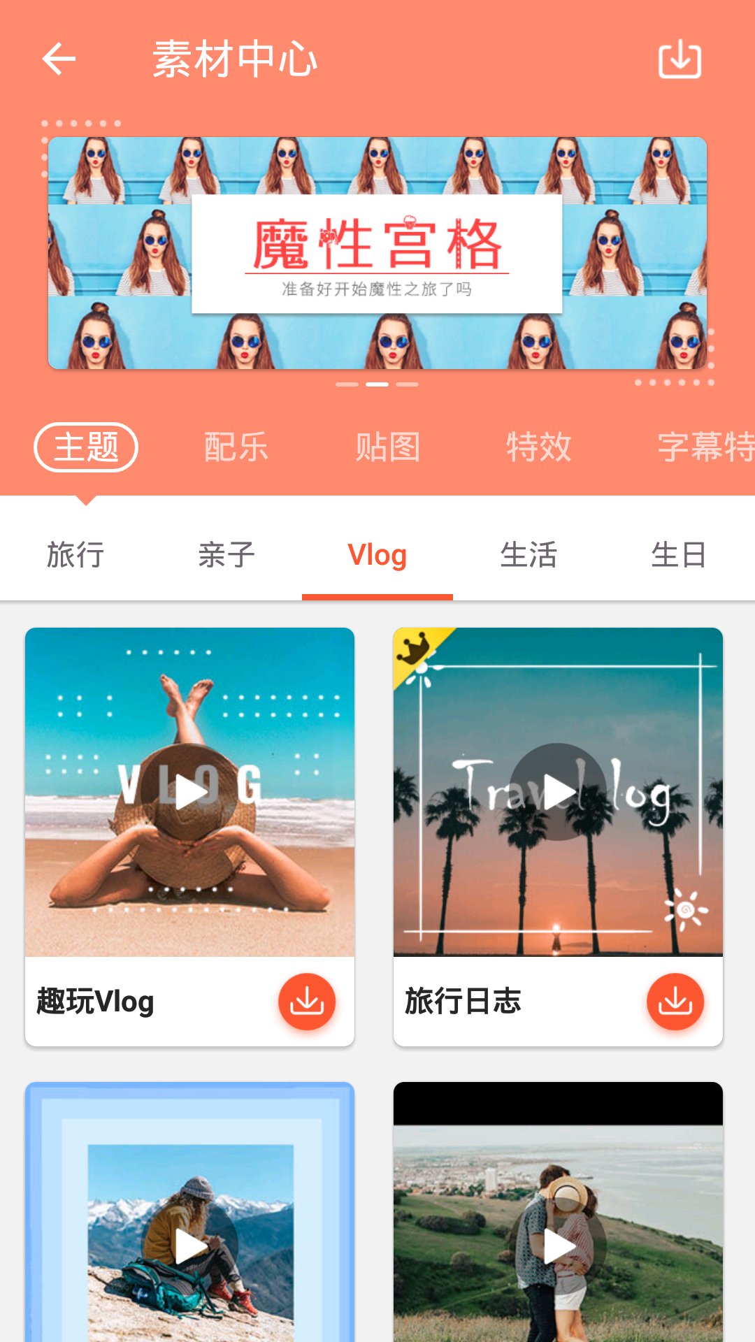 借助APP里的主题模板,我们可以导入视频素材一键制作视频,免去了编辑的麻烦。