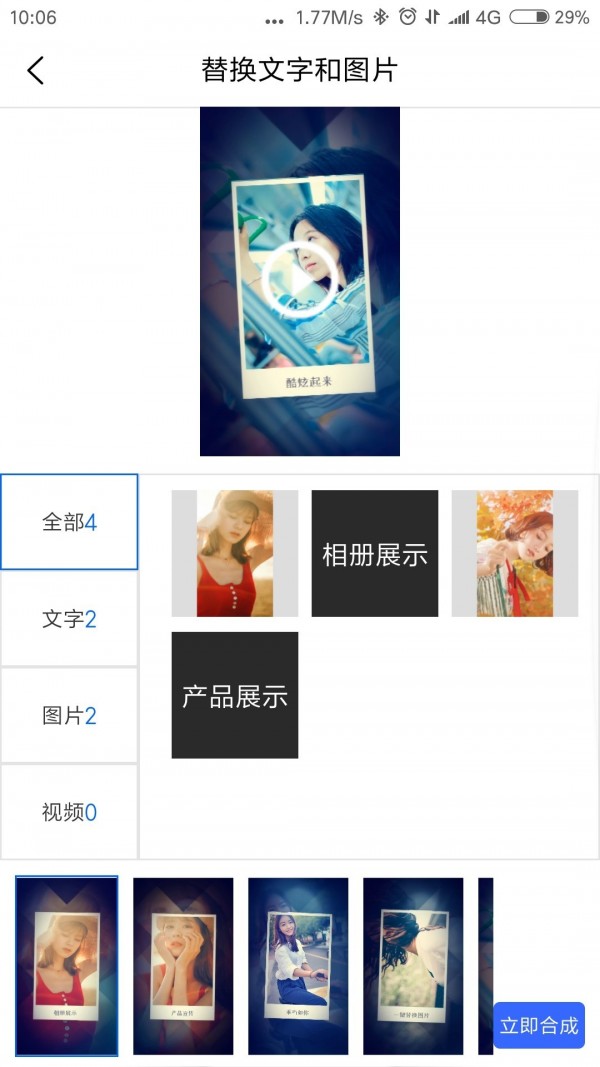 提供海量的创意模板,丰富的音乐资源、酷炫的特效,以及简单易操作的特性,让每一位用户在手机上就能轻松制作出喜欢的短视频,简单易操作。