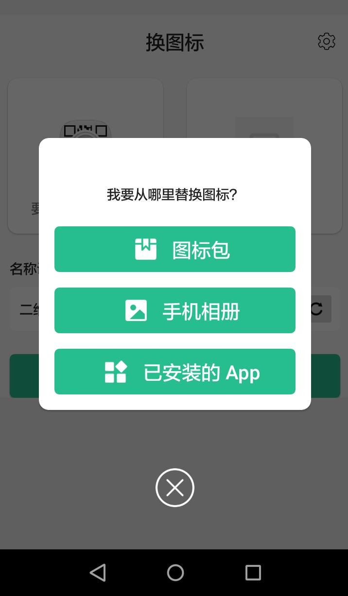 点击“选择新图标”从图标包,手机相册,自定义文字,已安装应用,第三方个性化图标包或近期使用图标库中选择新图像。