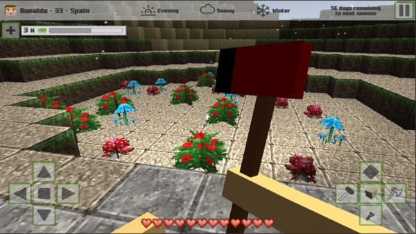 1,游戏的世界中以冬天为背景,玩家需要在大雪纷飞的世界中开始探索,游戏的玩法非常的自由,你能够在其中创造出无限的可能。