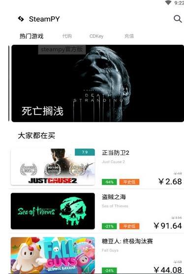 无论什么游戏都可以在SteamPY app上架销售。除此之外,在SteamPY app充值游戏也很划算,优惠力度都很大,喜欢的朋友快来试试看吧!
