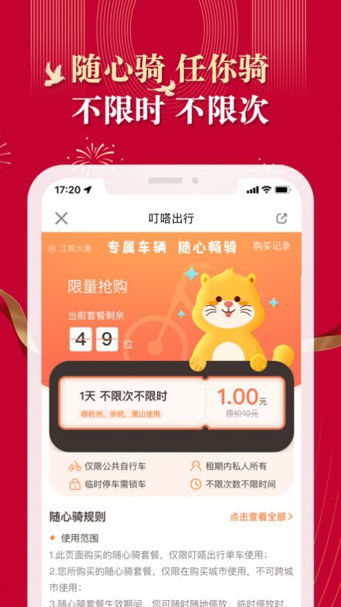 不限次数,30天免费畅骑,购买季卡更优惠。