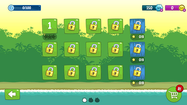 51个蓝色关卡要靠一定的在一行内的一定星数的关卡来解锁!