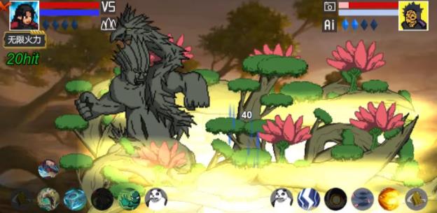 经典复古的像素风图形打造的各种帅气忍者,可以操控这些忍者来同其它动漫之中的角色进行格斗