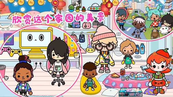 观光小镇中的各个场景,收集精美的道具,与各种物品互动