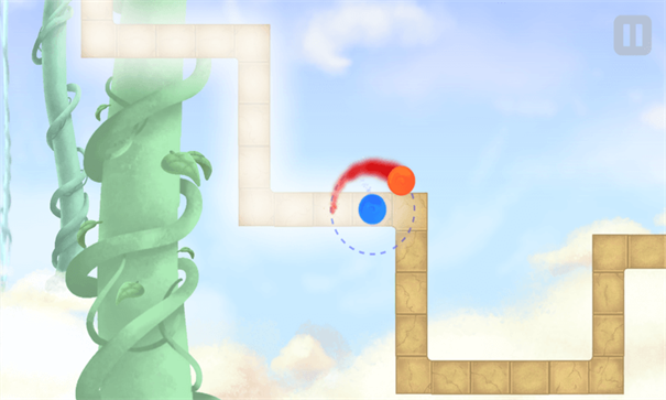 游戏一开始会有两个球在格子组成的面上互相转圈,每点一下小球就会在方格里前进一步。方向由点击时小球在的格子为准。