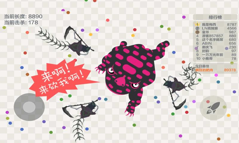 紧随于体型较强壮的蛇身后,若对方不小心失误或是被大蛇击杀,我们就能在五毒大作战中立即消灭对手,快速成长。当然这是有一定危险性的,稍不小心大蛇很可能随时转头把你吃掉。