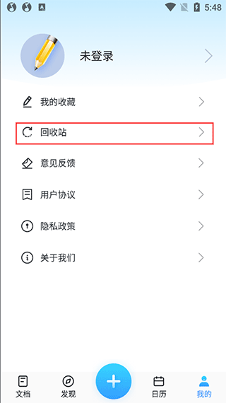 在【我的】页面找到【回收站】
