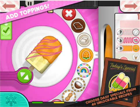 老爹冰棒店正版游戏让玩家体验老爹系列的经营管理玩法,担任冰棒店老板,这里有众多冰棒品种可供选择。挑选合适的模具和原料,为每位顾客提供最美味的食品。还有多种独特季节菜单等你解锁,享受制作过程的乐趣,让你的店铺名声大噪。