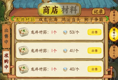 稀有小吃售卖说明:小吃既能分解得到原材料,也能通过直接抽取获取原料。这些原料可用来烹饪稀有小吃,进而进行售卖。
