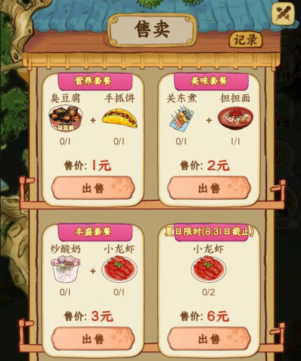 普通小吃售卖规则:使用金币能够提升小吃街的繁荣度,每当繁荣度提升100,就可以抽取一款小吃。抽取到的小吃能够依据订单来进行售卖。