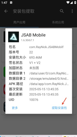 打开mt管理器,点击左上角三条杠,然后点击安装包提取。
