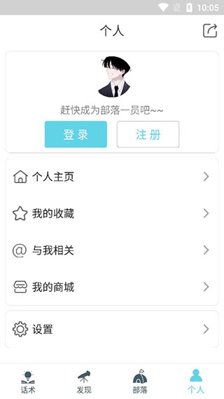 4、在个人中心板块,我们还可以登录自己的账号以及收藏话术。