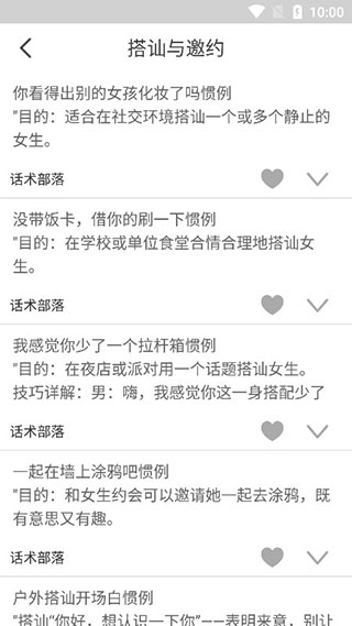 1、恋爱话术库各种场合下轻松搭讪聊天的秘诀和恋爱技巧,助你掌握恋爱艺术,为你的感情生活保驾护航。
