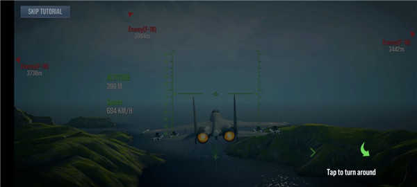 将机头指向敌机即可自动锁定,点击右侧导弹按钮即可发射导弹击落敌机
