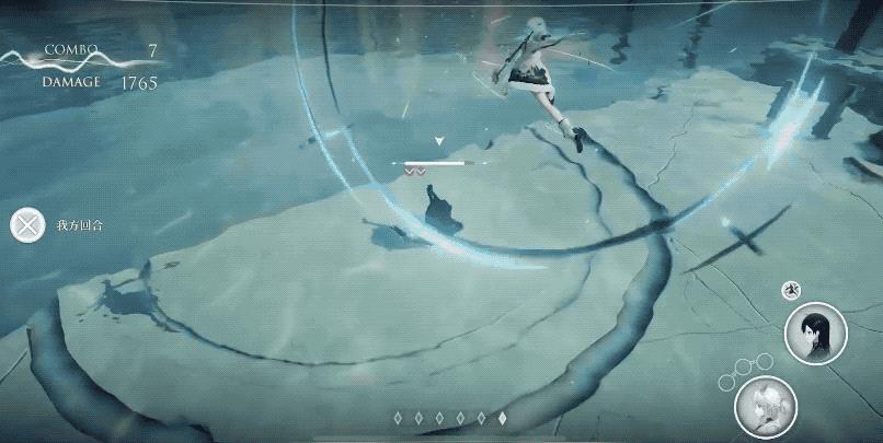 游戏的战斗系统是半回合制,核心是“行动点数”,我们控制的角色每次出招消耗1点,不同角色出招的顺序可以任意控制。 在这次的试玩版本中,我们控制两个角色,每个角色最多可以配置3个技能,既可以让其中一个角色打完三招之后,另一个角色再接上,也可以两个角色交替出招。