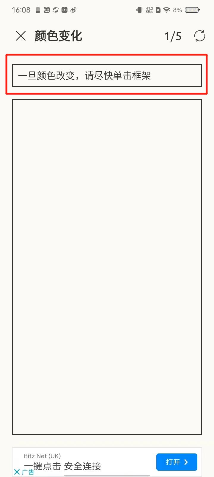 3、点击第一个练习【颜色变化】;根据上方的要去进行练习;
