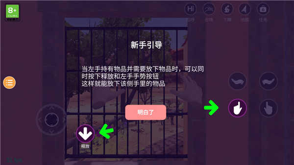当左手持有物品并需要放下时,可以同时按下左手手势按钮,这样就可以放下该侧手里的物品;