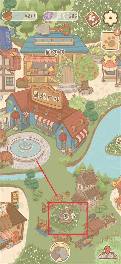 便当购买后返回小镇,找到并点击进入集市