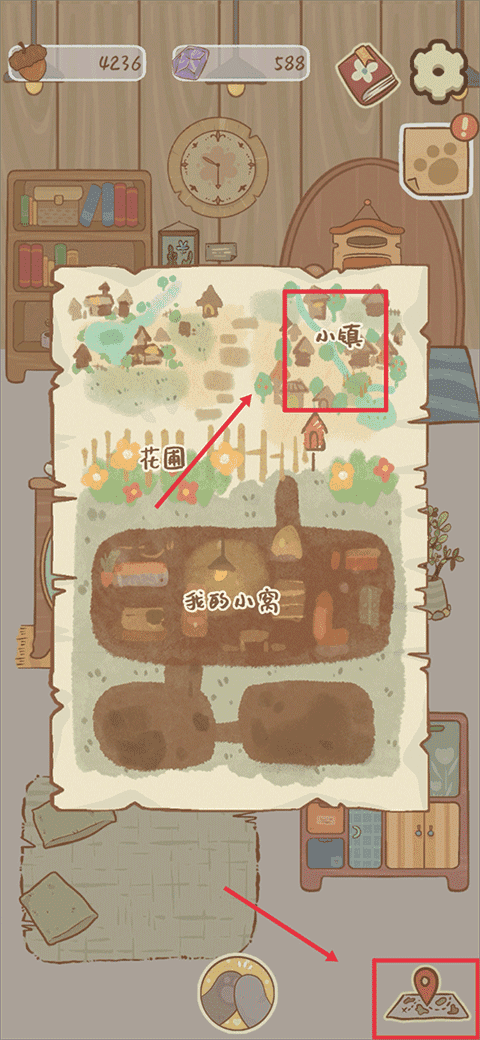 任务接受后,点击右下角地图,然后在地图中选择小镇进入