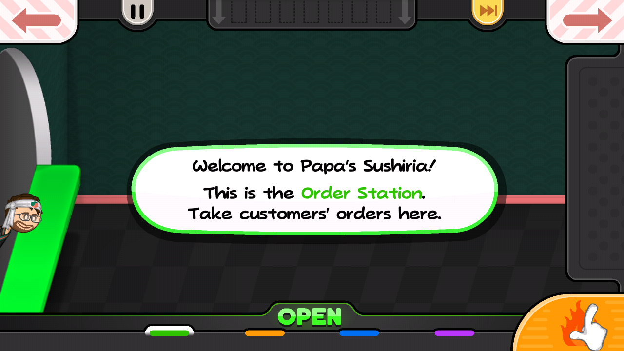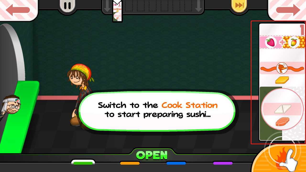 4、随后会向玩家展示寿司店,点击右下角的按钮;进入订单界面,顾客的订单都显示在这里;