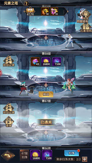 元素塔:突破石、灵力以及金币三大必需资源的产出地,每通过闯关10层,都会有一个礼盒奖励,里面有传说英雄碎片、史诗级传说级高星装备,还有超稀有的光暗属性碎片。元素之塔限购商城里面有各种限购的稀有道具。看到这么多的奖励,都是超低折扣的,小艾也是忍不住要买买买呀~