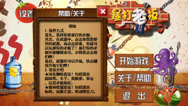 打开暴打老板游戏,点击帮助,你可以在这里看到游戏的基本操作玩法;
