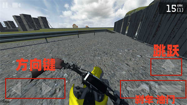 游戏的操作也很简单,左侧按钮控制方向,右侧↑按钮可以控制摩托车抬头,而下侧两个按钮则是刹车键与油门键;
