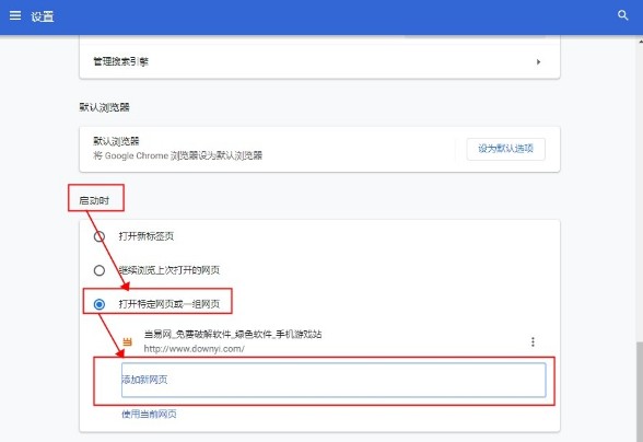 4.然后设置启动时网页的打开方式,如图,根据自己喜欢的网站进行设置,这样你启动谷歌浏览器的时候就是自己需要的主页了。