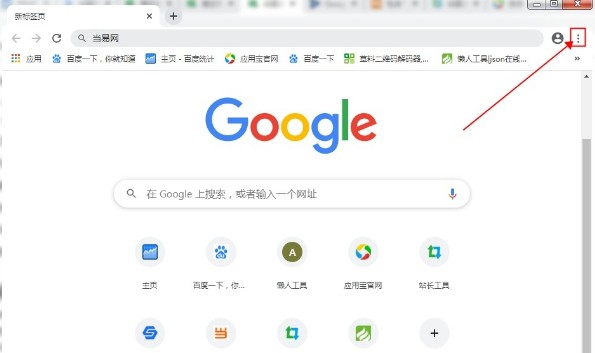 1. 首先启动谷歌浏览器并进入初始页面,点击屏幕右上角的三个点组成的按钮,如下图所示: