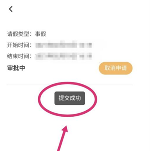 第8步,我们确认后就会退回校内请假的主页面,这时我们只需要等待审批员同意,通过请假即可。如果在这时发现请假的日期填错了,我们也可以取消请假重新申请,是不是非常简单呢?