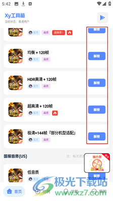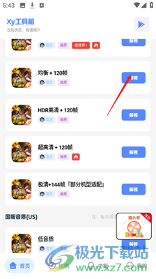 在极光下载站进行下载后,进入页面即可看到丰富的画质选项,点击即可解锁使用。