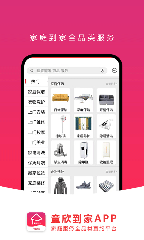“童欣到家”是基于位置的高品质快速上门服务平台,服务涉及到家庭保洁、美食外卖、美容美甲、化妆美白、美体瘦身、家具保养、保健按摩、搬家代驾、洗车洗衣、厨师做饭、保姆月嫂、摄影、教书、维修等众多品质上门服务,一个“童欣到家”就可以解决您生活中的各种琐事难题!