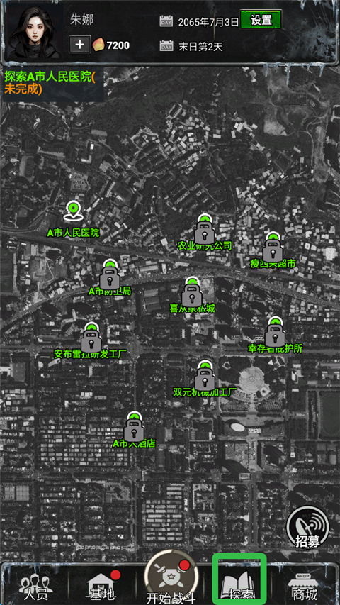 若需扩充资源或寻求生机,可点击探索按钮选择目标区域前往侦查;