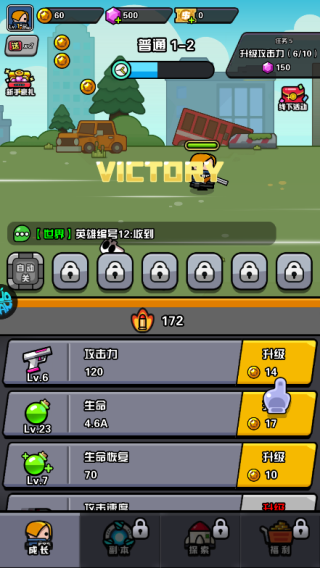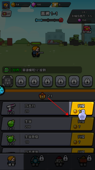 新手冒险家们最重要的就是用战斗所获得金币,来提升界面下方的战斗属性,完成指定主线任务将会解锁装备,技能以及伙伴,帮助冒险家们更好的应战。