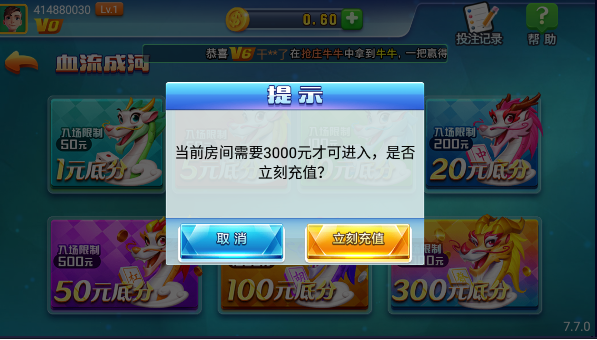 其中最高等级房间需要3000元才能够进入。
