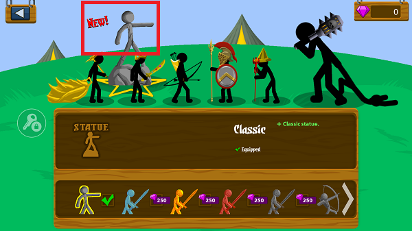 点击左上角的雕像,下方可以选择喜欢的雕像