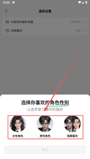 选择您希望的角色性别进行设置,确保系统推荐符合您的偏好。