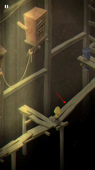 第一关是很多的鸽子,路过这里的时候小心这个板子,快要掉下去的时候快速点击屏幕让摩诺移动到安全位置上面。