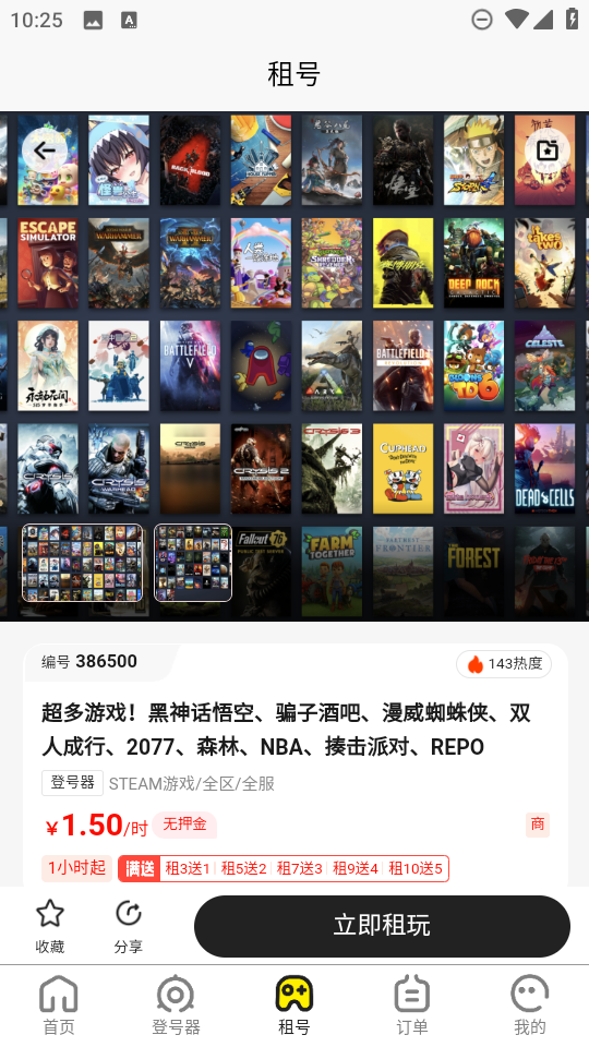 【多租多赠】一些热门账号,租2小时免费1小时,租3小时免费2小时,或租4小时免费3小时。租期越长,折扣越大
