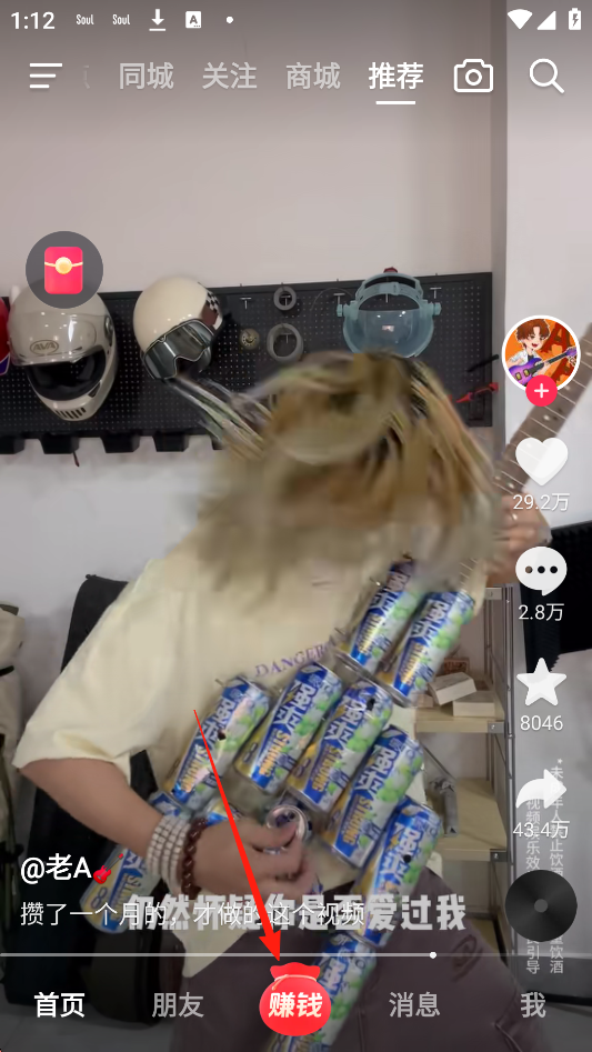1、打开软件,点击【赚钱】