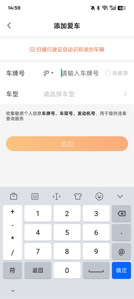 输入车牌号和车型然后点击添加