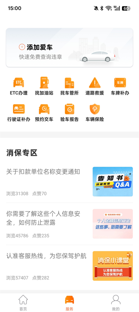 添加好车辆之后,可以使用软件内的各种服务