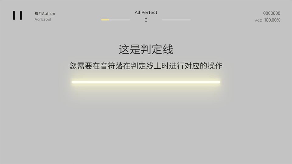 游戏中底部会出现一条黑色的判定线,你需要在音符落在判定线上时进行对应的操作