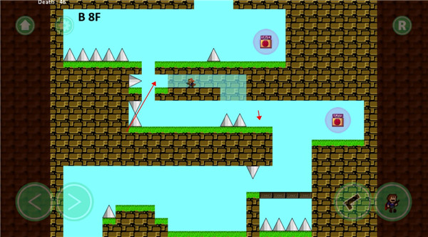 基础操作方面,玩家依靠点击屏幕来操控角色移动。当碰到需要存档的装置时,点击手枪图标,以此完成射击存档的操作。